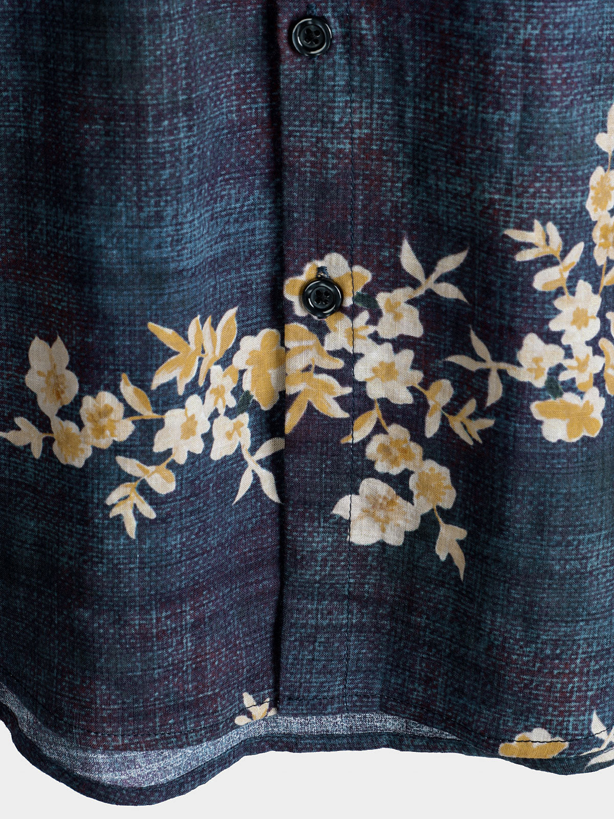 Men's Floral Printed Button Up Casual Short Sleeve Shirt