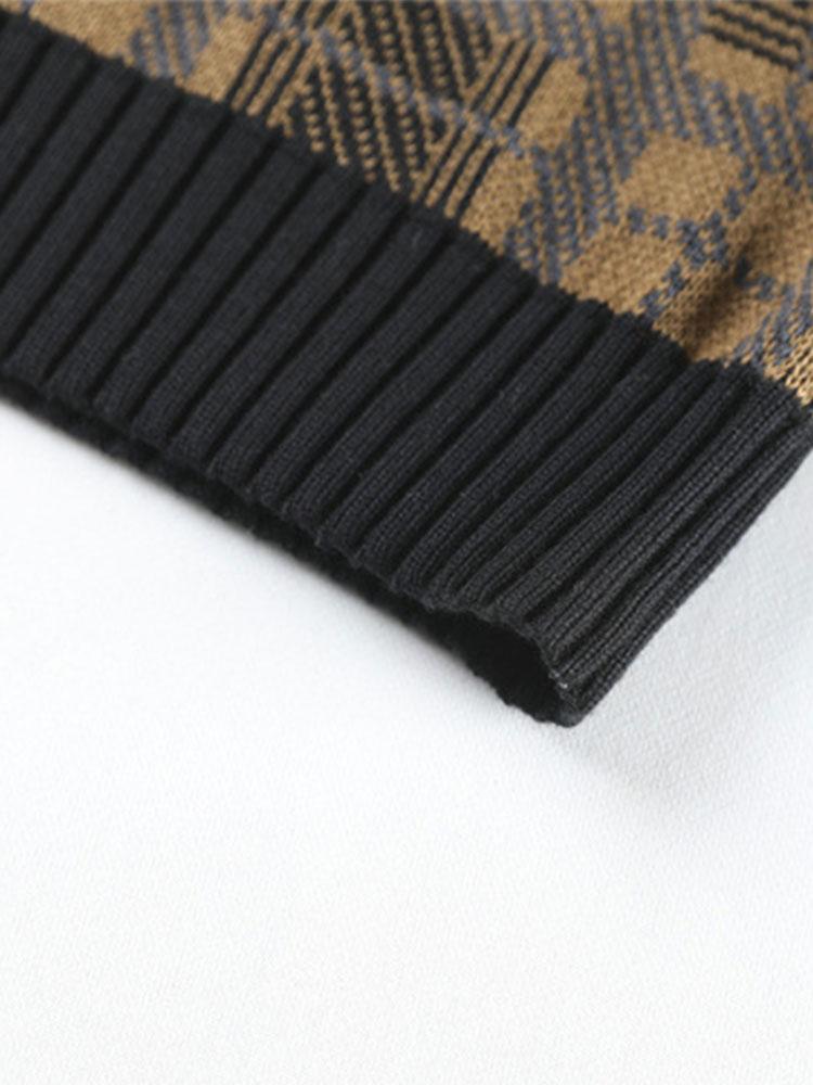 Slim Fit Knitted Plaid Paneled Hooded Sweater